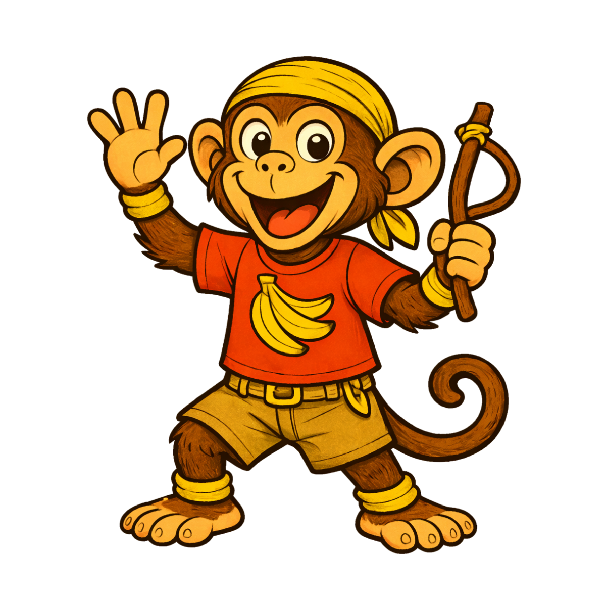 Koobi’s fearless best friend who turns almost every adventure into chaos… usually involving bananas.